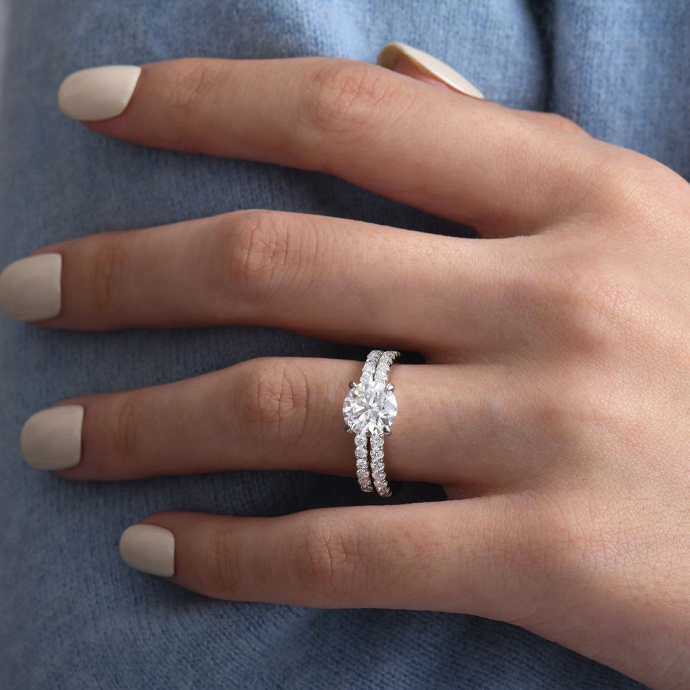 She is the girl of your dreams and the one you want to spend the rest of your life with -- ask the big question with our magnificent ring. The “Rebecca” features a gorgeous 1.75ct simulated diamond center stone, complimented with six delicately placed stones that sparkle brilliantly! This shared prong engagement ring features a band that is constructed of 925 sterling silver plated with Rhodium and will keep her happy for a lifetime.